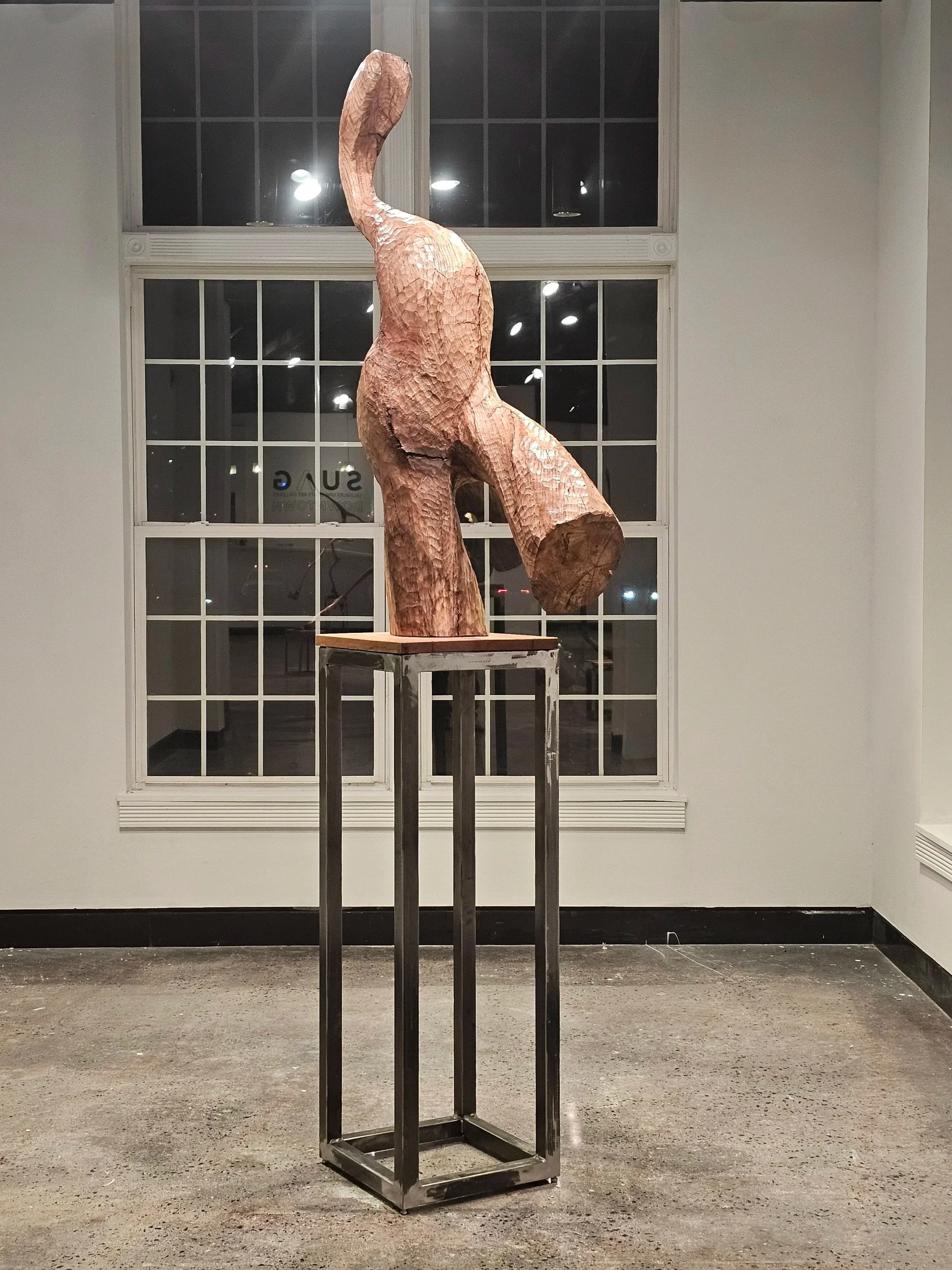 I’ve been making strange shapes for almost 30 years: knots, hands, figures, biomorphic abstraction, creatures. This work meets the wood halfway. Trees I’ve grown or lived with and pruned for years or gathered on travel meets my shapes, forms and experience. Cut, shaped, carved, hollowed and assembled; material carries meaning.